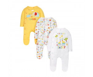 The sleepsuits come in a handy 3 pack, are made in soft cotton and are machine washable.