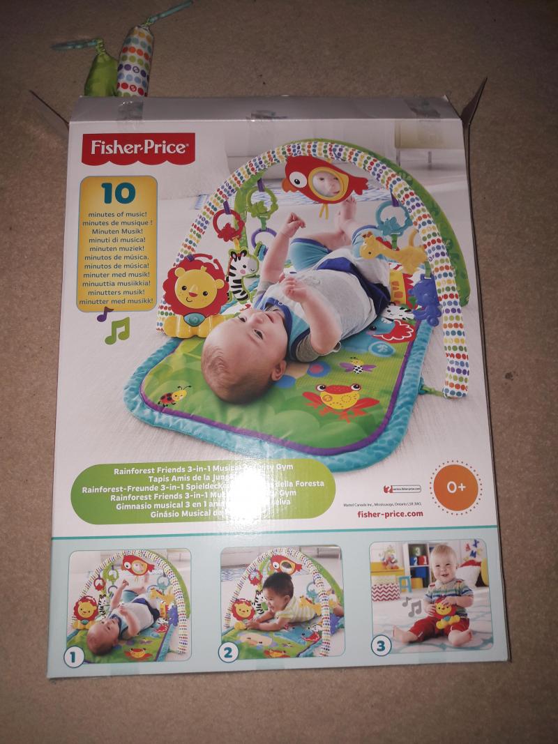 I bought this from toys r us for my baby when he was just 8 weeks old. He was beginning to explore more so wanted to offer age appropriate stimulation and it's honestly the best purchase ever! It was so easy to set up and my son took to it immediately. He used to hate his normal playgym and just cry, but with this he loved that he could make noises as he kicked on the piano. It is great for learning cause and effect (so "if I kick this It makes a noise- I'll do it again, I like the noise!").