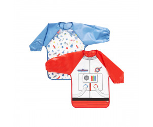 Perfect forbabies who are weaning or have started to feed themselves. This pack of two coverall bibs will help to keep your little one's clothes clean and protecte them from dribbles. splashes and spills. These coveralls are made from a waterproof fabric and easy to wipe clean. Extra wide with shoulder protection for a comfy fit and feature simple touch and close fastening for easy dressing.