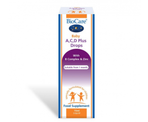 BioCare Baby a, c, d plus drops contains key nutrients at levels suitable for babies from one month in an easy to use liquid form. It contains vitamins a, c and d with b vitamins and zinc. Easy to take multivitamin for babies, can be mixed with milk, water or dropped into the mouth.