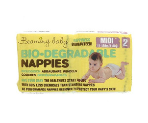 The Velcro-style fasteners are designed to be strong enough to re-fasten, and soft and smooth if they come into contact with your baby's sensitive skin. In addition to reducing chemicals your littl oen comes into contact with, Beaming Baby nappies provide an environmentally friendly, compostable product that is over 65% biodegradable, it can break down within four years.