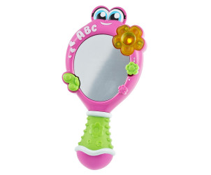 Clementoni presents this 'Real Electronic Mirror': a fun and interactive mirror that reflects your child's image with music and sounds. When the mirror's handle is turned on, it is accompanied by a fun sound effect. The electronic Mirror comes with two interactive buttons in the shape of a butterfly and a flower.
