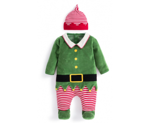 Ultrasoft velour features, lovely embroidered button and belt detail to create an authentic elfin look with no hassle. Candy cane stripe to the bottom half is fabricated from soft cotton, ensuring your baby elf is comfortable all day long.