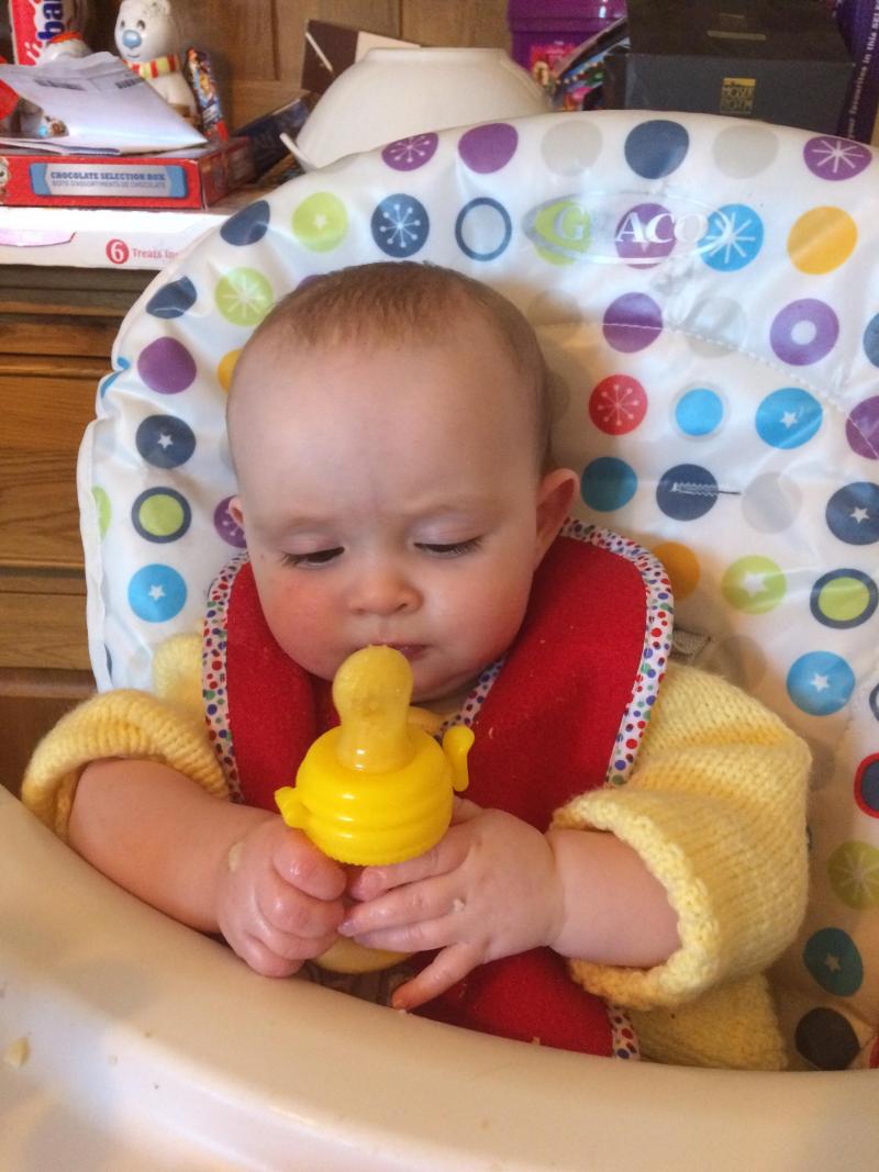 Baby and I have tried this and both of us were left frustrated and disappointed. I was quite excited to try this as I have seen great reviews about it online but I found it confusing and annoying. There are far too many pieces for me to get my frazzled sleep deprived brain around, I tried putting compote in there initially as it was labelled "fruit feeder" but it just ended up oozing out in a weird unappetising way. I then tried with banana but my seven month old has no problem picking up pieces of fruit and eating them without the need for this so I found it a bit pointless. I may try again in summer with grapes and strawberries but by then I reckon I would have missed the boat on the usefulness of this product. Maybe it would be better for a younger baby who is being introduced to fruits and veg and is teething at the same. Overall I was disappointed but that's not to say there aren't Mums and Dads out there who wouldn't find it useful! - Strengths: