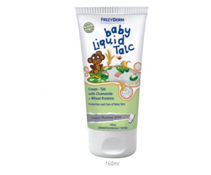 FrezyDerm 'Baby Liquid Talc' contains pharmaceutical grade talcum powder, which absorbs moisture on the skin and leaves a thin layer to protect.