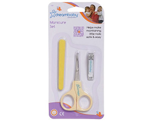 This Dreambaby Manicure Set includes 'Baby Nail Clippers, Nail File and Safety Scissors'.