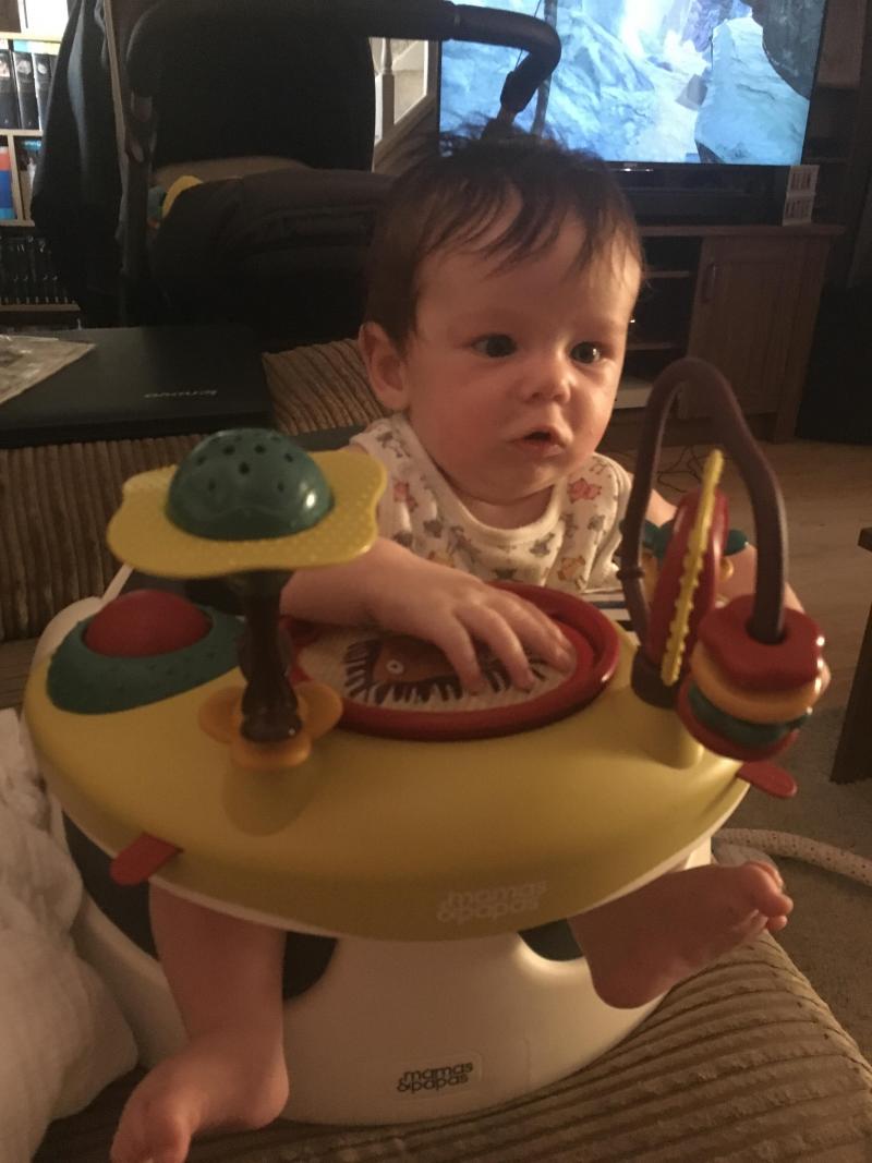 This is a great idea but not without its faults. My little girl will sit in this for 10 mins max before she gets fed up with being restricted. It’s true to its word and it is snug. It wouldn’t be suitable for chunkier babies around the top of the legs and I can’t see how this product with the tray could last until 6 months. The activity tray is bright and colourful and great from a sensory point of view. In hindsight I probably would now opt for the fisher price giraffe chair over this. - Strengths: