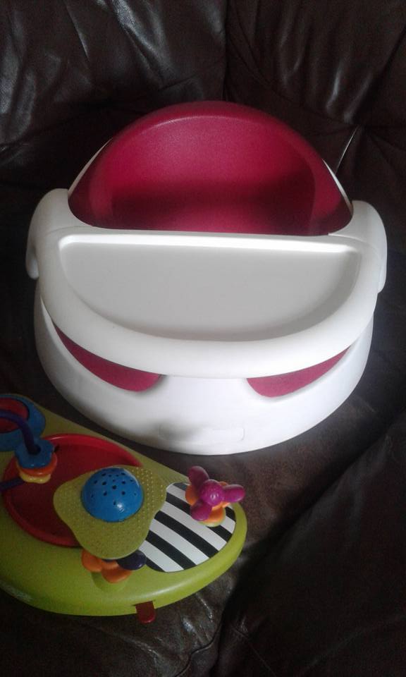 Perfect to help baby learn to sit up, comes with a good play tray. The coloured insert can be removed to so they can have more room once they grow out of the coloured insert. The tray is great to put snacks on too. - Strengths: