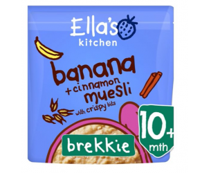 Ella's Kitchen Banana + Cinnamon Muesli with Crispy Bits 10m+ makes for a great breakfast. Organic oats, maize, banana and cinnamon muesli with wheat bits.
