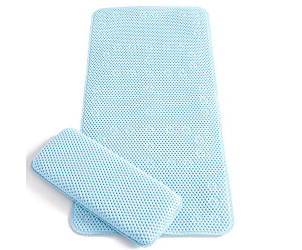 The Clevamama bath mat & kneeling cushion is an extra-long bath who was developed to protect toddlers and young children from slipping during bathtime. It is the perfect length to accommodate two children at the same time. The cushiony mat has suction pads to hold it in place on a smooth surface.