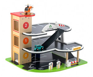 The Early Learning Centre Big City Wooden Garage has a wind-up lift ,speed bumps and even a chopper for high-speed chases.