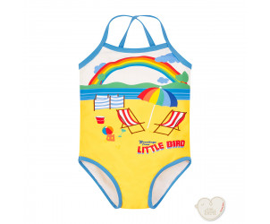 Little girls will enjoy splashing around with this Little Bird by Jools beach scene swimsuit.