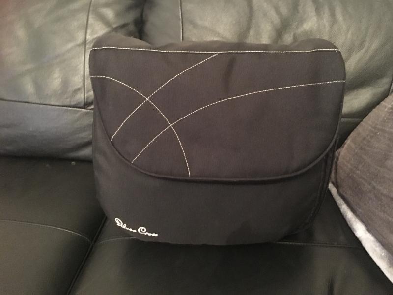 Changing bag with plenty of pockets inside and out to keep all babys things in. Comfy shoulder pad on the strap making carrying it easy. Comes with handy changing mat too - Strengths: