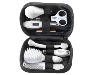 nine piece tommee tippee baby health and grooming kit in a small compact wipe clean and zip closure case. The case contains everything you need for baby from the new born stage all the way up to when they no longer require mum or dad to do it for them. The price point is very affordable and works out well for all you get in the kit. oral thermometer comes with battery already included. would so recommend as the first of many baby essentials you do actually use. - Strengths: