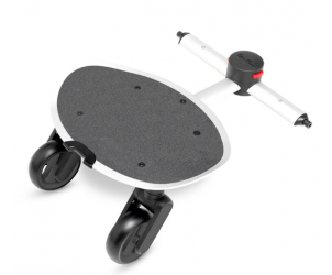 The Ride-On Board connects effortlessly to your Coast in no time with no extra fixings needed. It is finished in tough and sturdy aluminium with a roughly textured board surface for extra grip. The Ride-On Board has two swivel wheels with puncture free tyres, and independent suspension for the most comfy hop on ride.