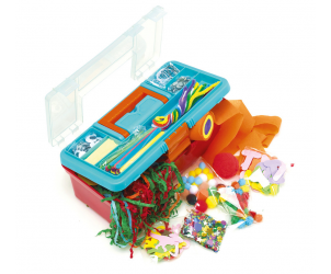 The ideal set for keeping children amused on a rainy day, the box includes pom poms, beads, gems, foam letters, coloured shapes, googly eyes, coloured pipe cleaners, paper streamers, elastic string, lolly sticks and a glue pen.