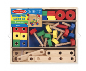 This 'Construction Set' from Melissa and Doug comes with 48 wooden pieces (including nuts, bolts, drilled bars to connect, and a child-size screwdriver).