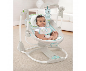 This Ingenuity ConvertMe Swing-2-Seat - Hamilton swing with five swing options converts easily to a seat with soothing vibrations to soothe your babe to sleep.