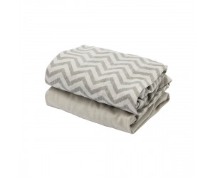 This pack includes two fitted sheets in with two different designs - plain and chevron. The perfect choice for dressing your baby's crib. These sheets are made from 100% natural cotton which is gentle to young skin offering a comfy nights sleep.