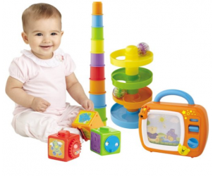 The Bruin Deluxe Infant Gift Set is perfect gift for your little one! Comes complete with stacking cups, play cubes, musical TV and spiral ball drop - guaranteed non-stop fun for baby!