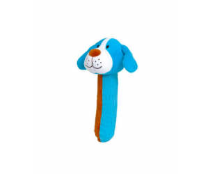 The Fiesta Dog Squeakaboo toy is a soft rattle with a squeeze noise function.
