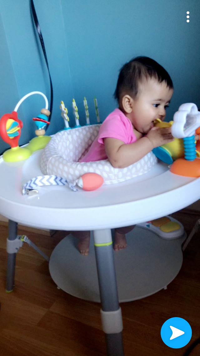 We brought this for our four month old and loved the idea that he can use it once he is walking etc as a table as well as to sit in. He already loves the different attachments to it. - Strengths:
