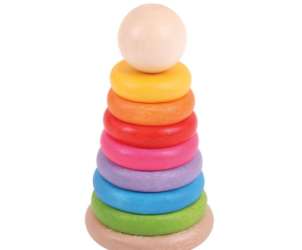 The Bigjigs First Rainbow Stacker will teach your little-one all about size, from the biggest to the smallest. The stacking pole folds flush with the stand when it's empty, for optimum safety. Helps to develop dexterity and co-ordination.