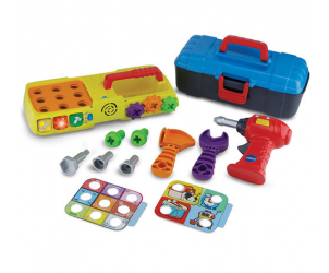 This vtech Fix and Learn Toolbox includes a pretend mechanical drill, hammer, spanner, nails and screws to entertain your little builder.