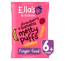 Ella's Kitchen Grab Me Melty Puffs Strawberries + Bananas 7m+ make for a great snack. Made with 100% organic strawberry and banana flavoured maize.