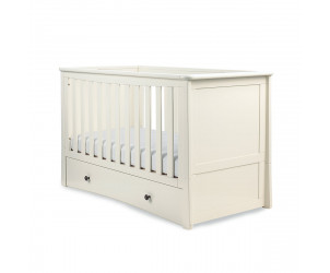 The Mothercare Harrogate Cot Bed, a part of the Harrogate range, can be used from birth to approximately four years and converts easily from a cotbed into a toddler bed. The bed has three adjustable mattress heights depending on the size and age of your little one, the highest to be used for newborns and the lowest for when your child can stand.
