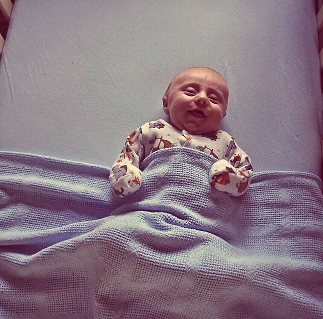 I first put my son to sleep it in when he was about 8 weeks old, he looked so tiny!! As he’s grown and started to roll we’ve lowered the mattress and he really enjoys rolling around in there as it’s very roomy.