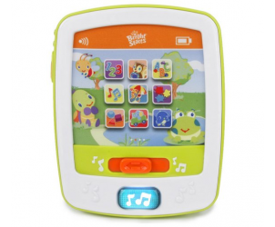 Great first interactive tablet for babies/toddlers. Has different settings so the same buttons can play different songs. And has adjustable volume. However with the hard plastic sides and back it was inevitable that it would break...which is disappointing as it was very entertaining. - Strengths: