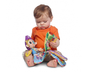 It features many different textures for your infant to discover, stimulating the sense of touch. The pages crinkle and squeak when squeezed and when Horace gets shaken, baby will hear bell sounds.