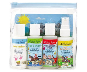 4 travel sized bottles of the award-winning best sellers from Childs Farm to wash, smell lovely, detangle and look great.