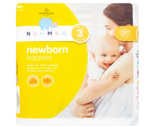NUTMEG Newborn size 3 nappies are very soft on babies delicate bottom. They fit well with no gaping which is great because this means no leakage!! They are very reasonably priced and are also often on offer which is great. - Strengths: