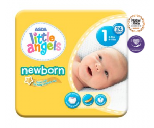 Asda Little Angels Newborn Bag Size 1 Nappies are super soft and specially cut to avoid umbilical irritation. With wetness indicator.