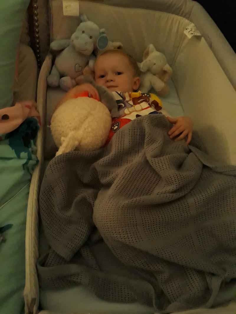 Baby would not sleep in his moses basket, do we tried the next to me and he slept straight away!