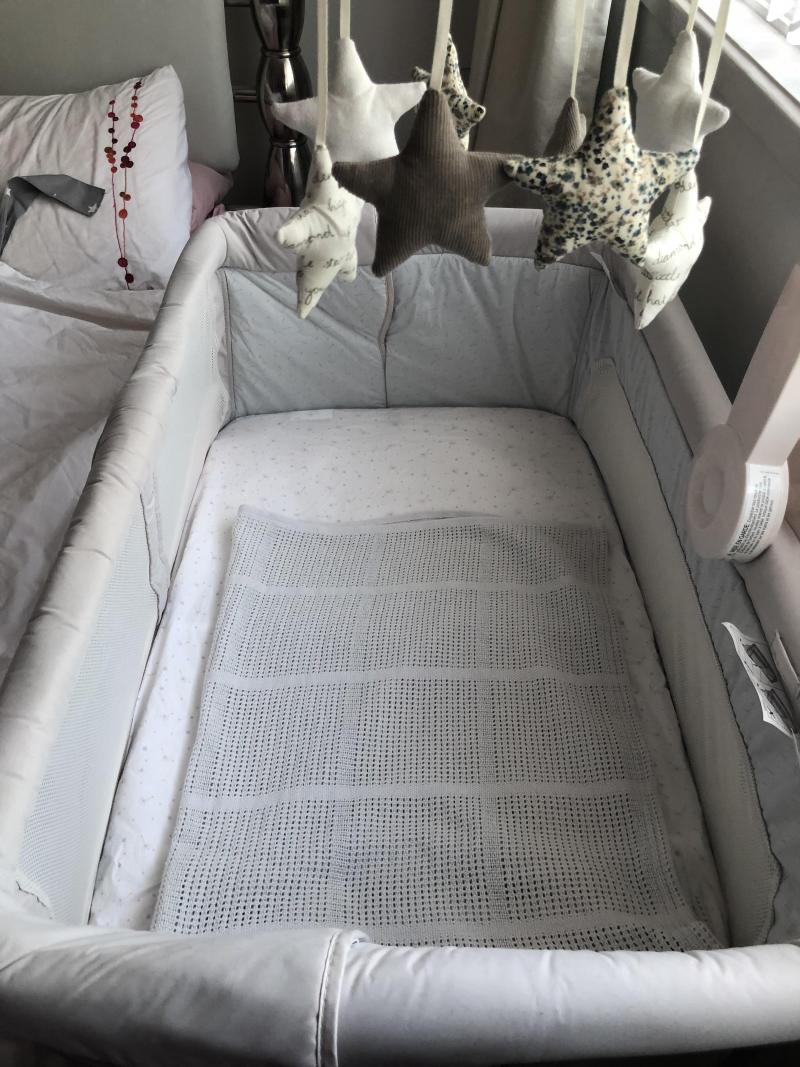 it was a gift, at first i was so set on getting a moses basket as that's what we had with our first baby, but wow, im so glad we got gifted a next2me crib. Was so convenient with the night feeds as i was breastfeeding, not too much disturbance for baby transferring her from crib to my bed as they were so close. There is different height settings to accommodate different height beds, legs that fold in to suit divan beds & you can tilt the crib down handy if baby has reflux or is suffering with a stuffy nose. Its also so handy as the side folds down so you can co-sleep with baby. The official Next2Me Crib sheets are expensive priced at £20 for 2, so we bought alternatives from mothercare which were about £7. We are still using this crib now & our little girl is 5.5 months old. il be sad to take her out the crib to be honest as its been amazing! would definitely recommend to any new parent that's deciding on first bed for baby. - Strengths: