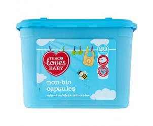 The Tesco Loves Baby laundry capsules are soft and cuddly for delicate skins.
