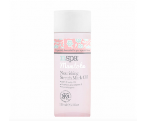 nspa's mum to be nourishing stretch mark oil contains a blend of sweet Almond Oil, Jojoba Oil, Vitamin A and E to reduce stretch marks forming.