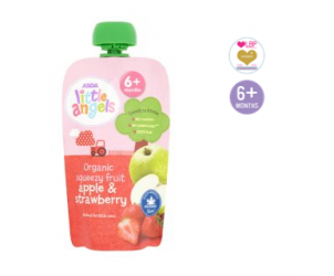 Asda Little Angels Organic Squeezy Fruit Pouch Apple & Strawberry 6m+ is an organic blend of fruit puree.