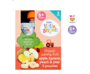 ASDA Little Angels Organic Yummy Fruit Apple, Banana, Peach & Pear 6m+