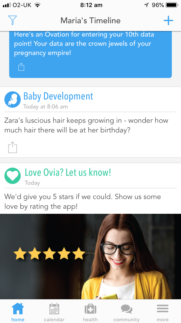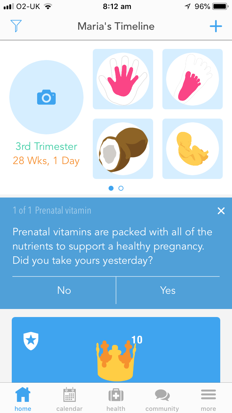 I love checking in every week with this app to find out what's happening and how big the baby is. The community section is a bit of fun although I don't find I use it very much. The tips and articles that are shared are really helpful and reassuring too. There's a calendar to record all of your appointments and it would be great if this could sync with another calendar, having to input twice means I don't use this feature of the app at all. - Strengths: