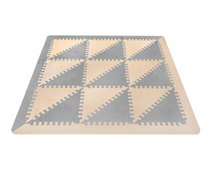 This is a lovely looking playmat. We have the grey and mint version and it looks pleasant in our room (and a nice change from many overly colourful children's products). The interlocking foam triangles can be arranged in numerous ways which allow you to customise its final appearance. My eldest son really enjoyed helping me to assemble it. The joins aren't very obvious when everything is assembled and the edges are neat and the corners rounded.