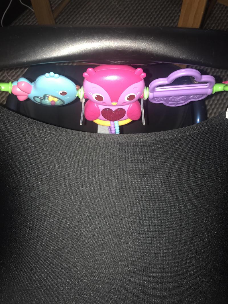 This is great for the car seat as I like how it attaches to the side of the handle, instead of on top. It means you can still pick the car seat up without the toy getting in the way and it doesn't slide around, stays in one place which is also really good.