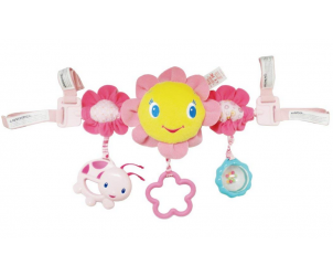This is a fabulous toy for the car seat. It would keep my little one entertained the whole time in the car from the moment she could move her arms to play with the it (at just a few months old ) It is easy to put on and take off. You can also use it on the pram. It is easy to clean and it plays some nice sensory sounds. - Strengths: