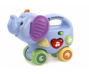 a fantastic inexpensive interactive pull along elephant from the most loved vtech group. My daughter has many of happy hours pull , pushing pressing and singing or laughing to her ELE she calls it. various child melodies that are familiar for her to sing to. great for all round motor and key stage skills and it is motion censored which we love. would recommend - Strengths: