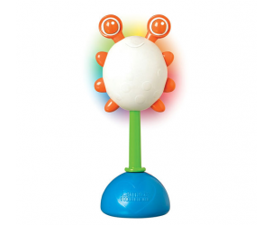 Pips around the edge help your baby to kaap hold of the rattle, and a soft and chewy pair of eyes are at the top. A broad base adds stability and means you can place the rattle upright when not in play.
