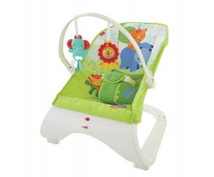 This bright and colourful Rainforest Friends bouncer features soothing vibrations to rock baby to sleep.