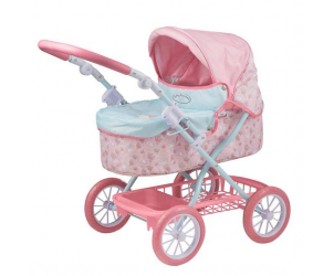 Classic design for Baby Annabell dolls, a pram with fully adjustable comfort grip handle, maximum height 74cm. It has a co-ordinating shoulder bag and handy under seat shopping basket to store all your dolls accessories.